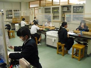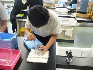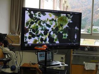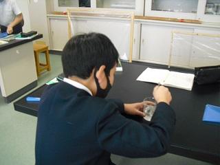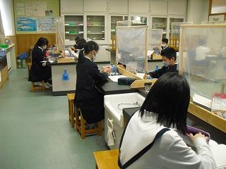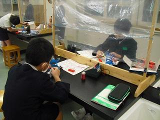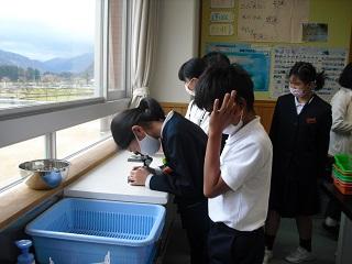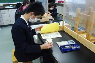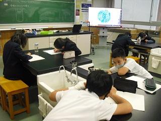 6年生の理科。火山灰のつぶの様子を顕微鏡で観察していました。