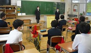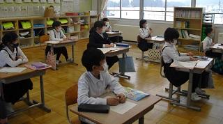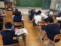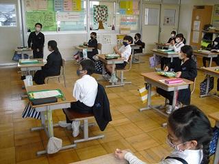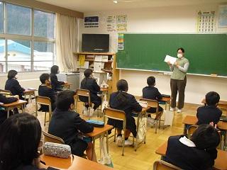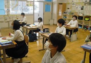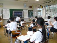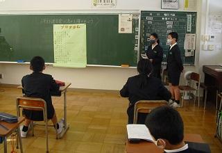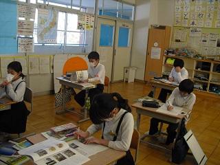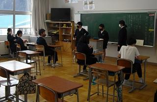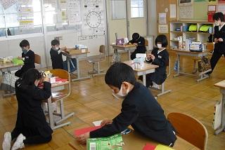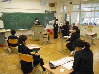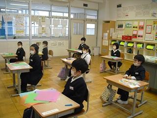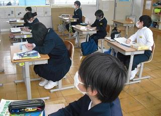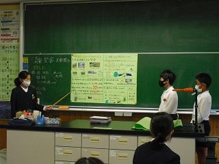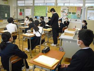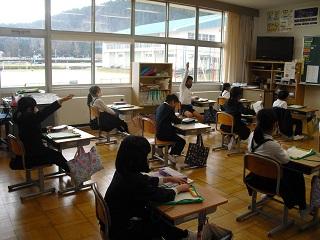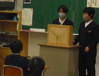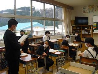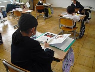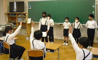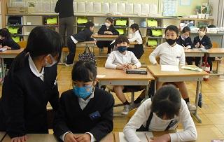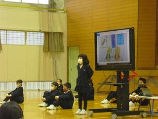 4年生は、国語科で作成したリーフレットを用いて伝統工芸について、3年生に発表していました。大きな声で分かりやすく発表していました。3年生も発表を聞いての感想などを積極的に発表していました。