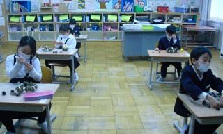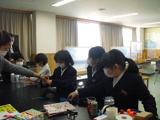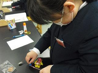 5年生。図工の作品が完成したので、友達の作品でもビー玉を転がしていました。