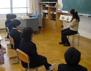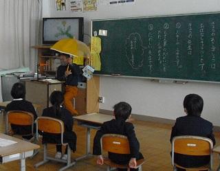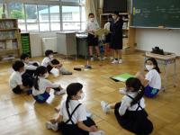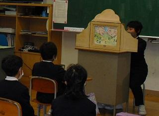 今日の朝学習は、子どもたちが楽しみにしている「お話キャラバン隊」でした。みんな真剣に聞いていました。