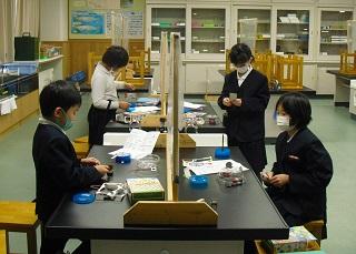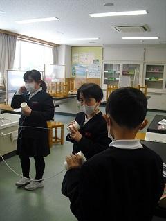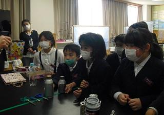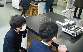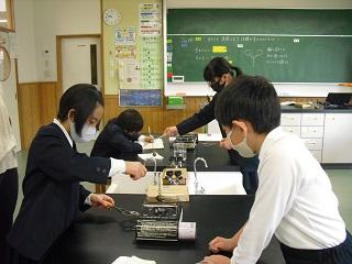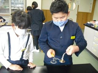 4年生の理科。金属を熱すると体積はどうなるのかを実験していました。水や空気との違いはあるのか、予想を立て取り組んでいました。