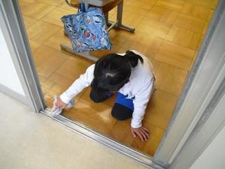 今日は、月に1回の「おそうじデー」で、いつもより掃除の時間が長くなります。ドアのレールの溝や黒板など丁寧に掃除をしていました。