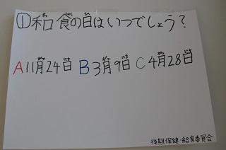 今月の給食目標は、「和食のよさを知ろう。」です。保健給食委員の皆さんがクイズラリーを企画しました。問題は9問あります。全部、解けたかな?