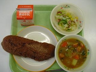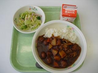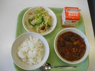 今日の給食は、ビーフシチュー、ビーンズサラダでした。ビーフシチューはコクがあって、サラダもいろいろな種類の豆が入っていて、とてもおいしかったです。