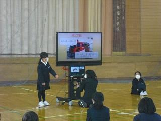 1年生が鳥越っ子集会で、国語科の「自動車くらべ」の単元で、自分が選んだ自動車の仕事やそれの仕事をするためにどんなしくみがあるのかを発表しました。原稿も見ずに、ジェスチャーも付けて、大きな声で堂々と発表していました。たくさん練習したことがうかがわれました。みんな、よく頑張りました。