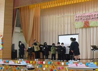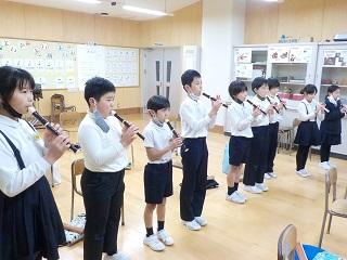 4年生は昨日、担任の先生を招待して合奏をしました。緊張したけれど上手に演奏することができました。