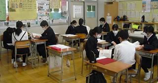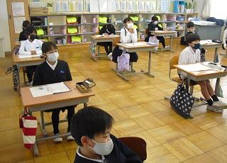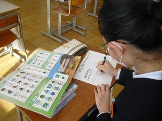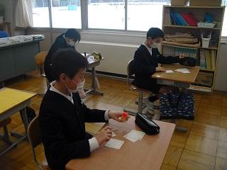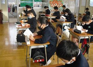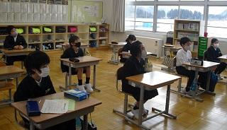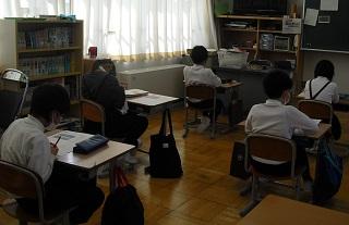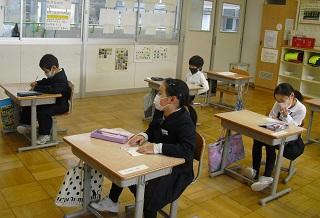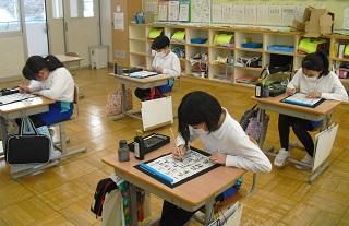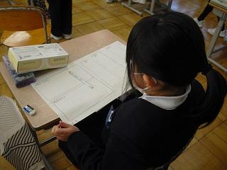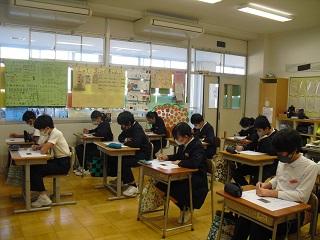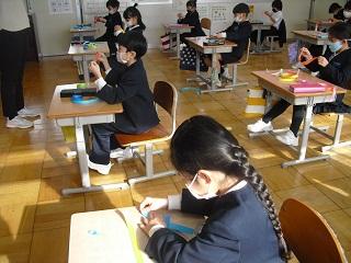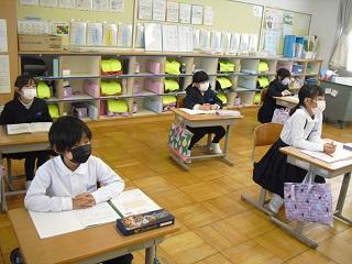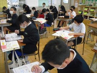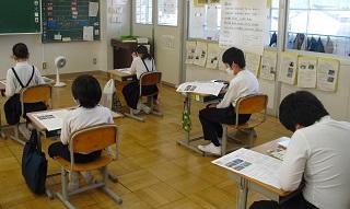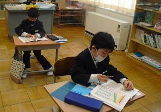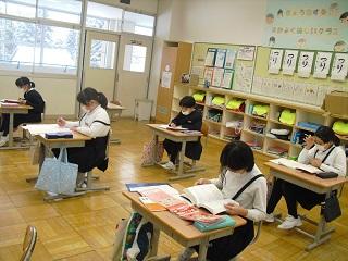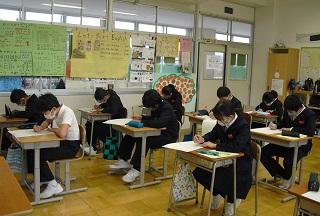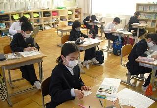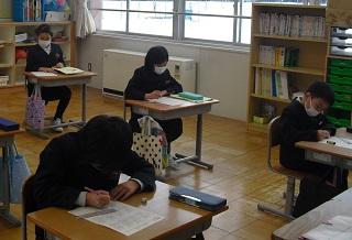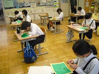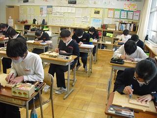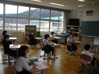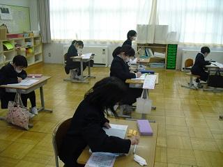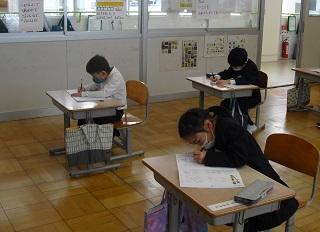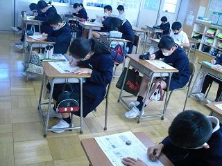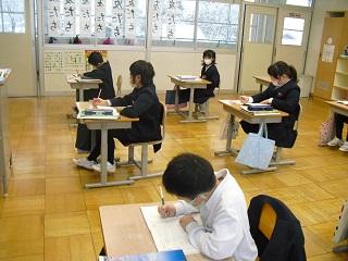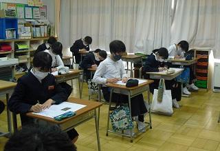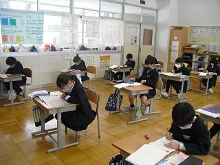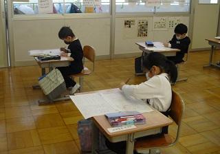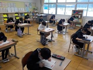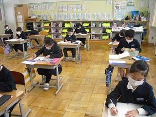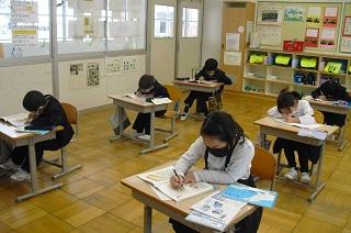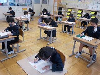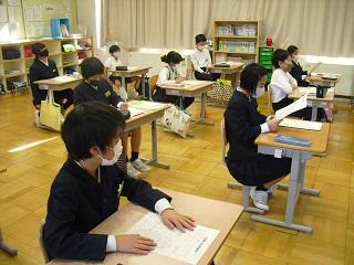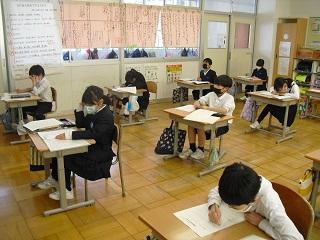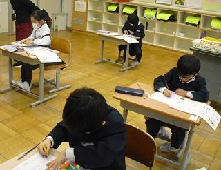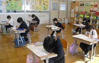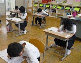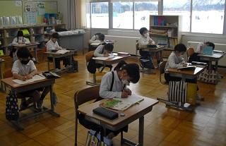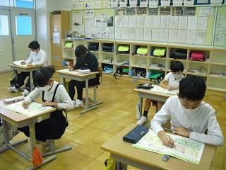 6年生は国語のテストを受けていました。みんな真剣です。
