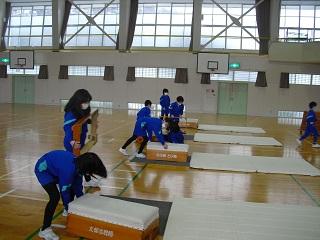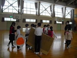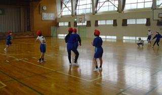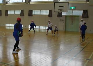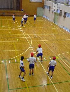 体育では、後ろ向きにパスをしてリレーしていました。