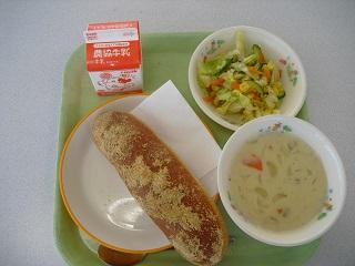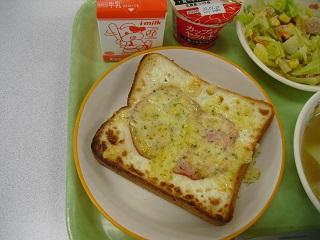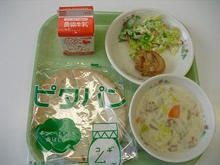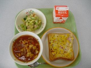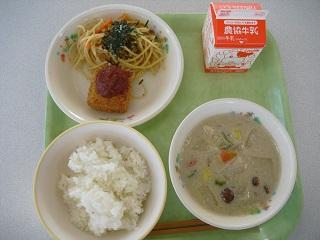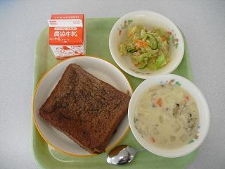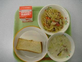 今日の給食は、トースト、きのこスパゲティ、白菜のクリーム煮でした。白菜の甘みがスープに出ていて、とてもおいしかったです。