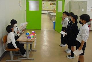 4年生の外国語活動。買い物の練習をしているところです。