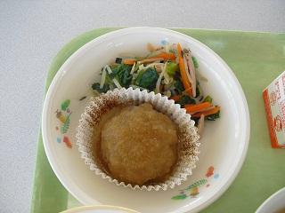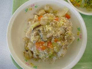 今日の給食は、ハタハタのから揚げ、れんこんサラダ、卵とじでした。卵とじには、くるま麩も入っていて、とてもおいしかったです。