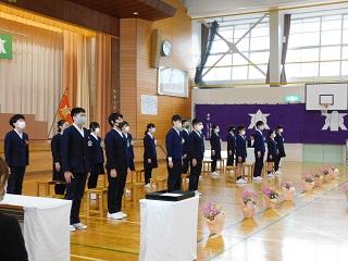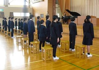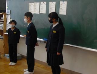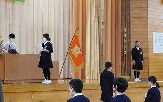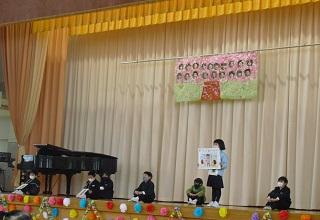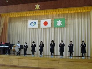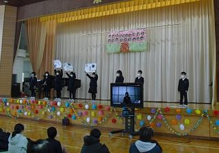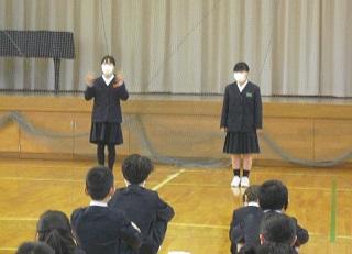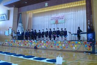 今月の生活目標「思いやりの気持ちを持って行動しよう」にちなんだ今月の歌「今日から明日へ」を歌っています。