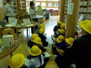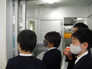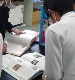 2年生と一緒に1年生が学校探検をしていました。