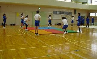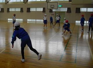 5年生の体育の様子です。ボール投げをしていました。相手がとりやすいように投げています。