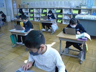 4年生がタブレットを使って、国語の学習をしていました。
