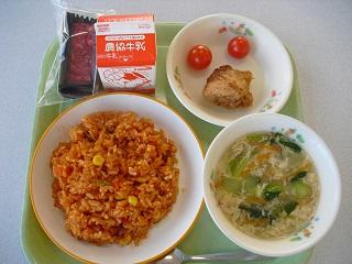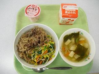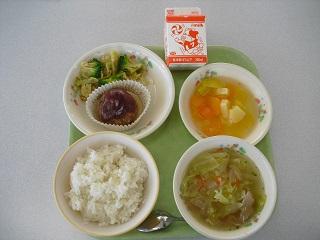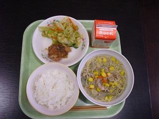 今日の給食は、スタミナいため、コーンかきたまスープ、ヨーグルトでした。スタミナいためには、キムチが入っていて適度な辛さでとてもおいしかったです。
