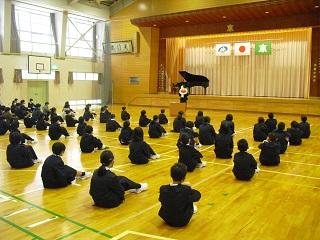 今日は、白山市音楽会に向けて、全校への発表会がありました。