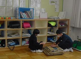 学校にもダンボールや新聞がたまっています。