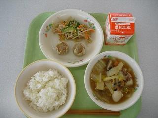 今日の給食は、手巻き寿司、とりだんご汁でした。とりだんご汁は、しょうがやからしもきいていて、とてもおいしかったです。
