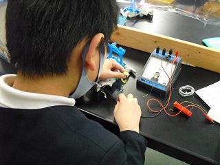 3年生の理科。「電気であかりをつけよう」の学習です。身近なものに電気が通るのか、予想をたててから、実際に確かめていました。