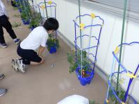 2年生が、トマトのお世話をしていました。