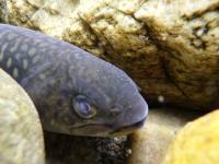 岩陰で捕まらないように隠れているイワナを発見!
