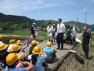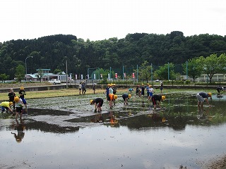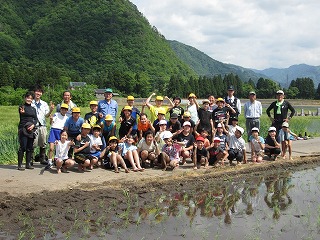天候にも恵まれ、5・6年生が田植え体験をしました。