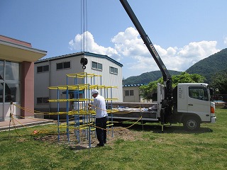 上野町の方が、枠を転がしてくださり、田植えの準備ができました。