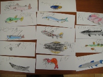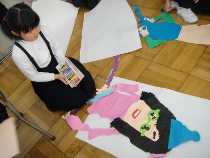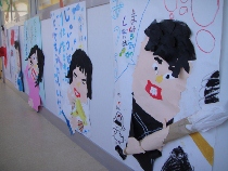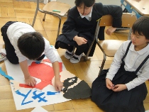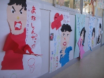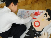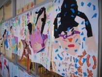 2年生は、何かをしている自分をちぎり絵で表現してみました。いきいきとした自分を上手に作っていました。
