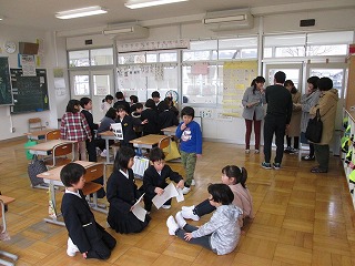 縦割り班ごとに、1枚シートをつくり、在校生がお祝いの