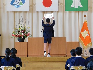 これは、スピーチの場面です。『自分の成長』『感謝』