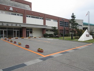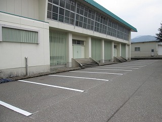 学校の玄関前や駐車場のペンキを塗り直しました。
