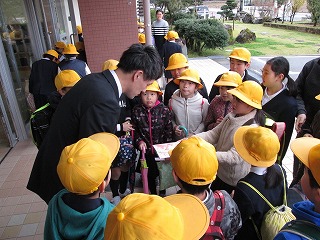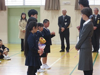 子ども達は、花束とお手紙を持って、感謝を伝えながら
