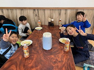 午前中の練習が終わり、指導者の方とカレーを食べて