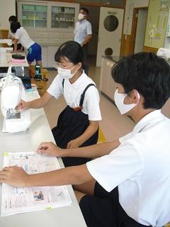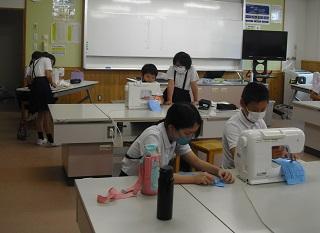 5年生の家庭。今日はミシンを使って雑巾も作りました。