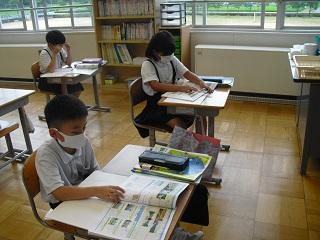 今日は、県民一斉防災訓練(シェイクアウトいしかわ)に参加しました。午前11時に放送の指示に従って、しゃがむ、隠れる、じっとするの安全行動をしっかりとることができました。また、夏休み前の地区別安全指導・集団下校訓練も行いました。地区別に危険なところや登下校のマナーについて確認した後、体育館で安全指導を行いました。今日は下校バスに先生も乗って、集団下校の訓練もしました。