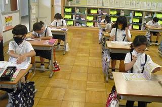 1年生の国語。「おおきなかぶ」の授業です。登場人物になりきって音読していました。