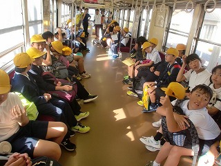 秋の校外学習、5・6年生は、電車の乗車も体験しました。