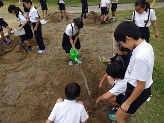 1年生から4年生までが、合同体育で、スポチャレいしかわに