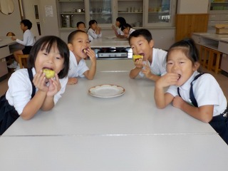 給食を食べ、みんなで楽しい遊びを相談し合いました。