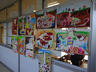 2年生が、テーマ「あなのなかには・・・」で絵を描きました。