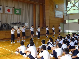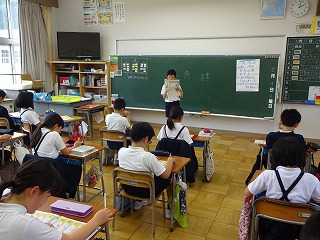 5年生 『集合学習』での学校紹介の場面です。