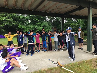 25日に体験した『アーチェリー』の準備運動の様子です。