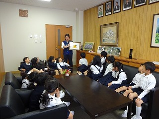 1年生が校長室に学習にきました。目的は、「校長室のひみつ」を探ることです。