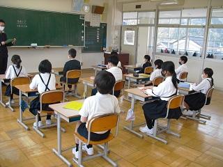4年生。とてもいい姿勢で先生の話を聴いています。