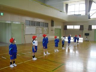 1年生の体育の授業。準備体操をしているところです。みんな頑張っていました。