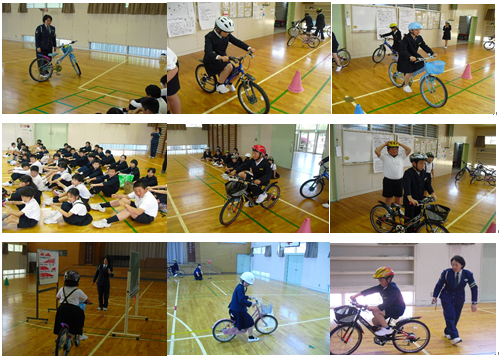 5月13日(金)、白山警察署の方々にお越しいただき、自転車安全教室が行われました。乗る前の点検の仕方から、乗る前の右→左→後→前という安全確認の仕方、止まり方など、ていねいに教わることができました。自分だけでなく、歩行者の安全を守る大切な観点を学ぶことができたので、ずっと忘れないでいてほしいです。
