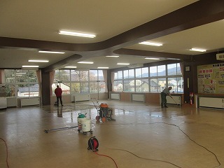 『多目的室』『理科室』『家庭室』『ランチルーム』のワックスがけを
