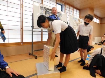 100,000,000円を持つ体験もさせていただきました。その重さにびっくりした子ども達でした。