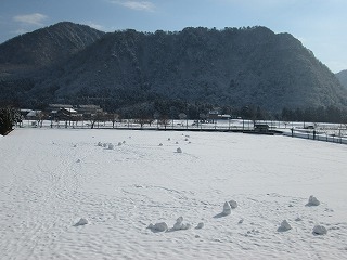 子ども達は、早速、運動場で雪だるまつくりでした!